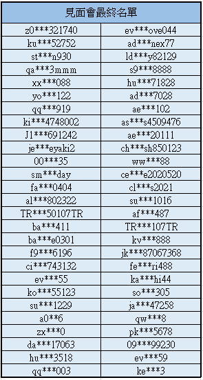 最終名單如下: