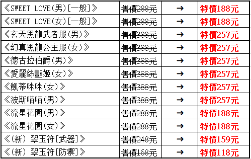 ※結束遊戲時,請於遊戲中按[結束遊戲],並依系統等待時間自動關閉遊戲, 以免造成遊戲資料遺失。 ※購買幸運盒道具後,請儘速使用完畢,避免因遊戲資料更新而造成資料異常。 ※幸運盒道具為機會中獎商品,消費者購買或參與活動不代表 即可獲得特定商品。 ►百寶閣特價即將結束商品: