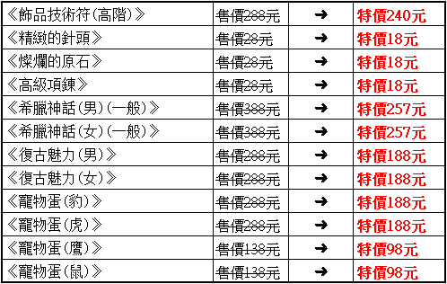 ►百寶閣特價商品: (販售時間2022/10/20 維護後 ~2022/10/27 維護前)