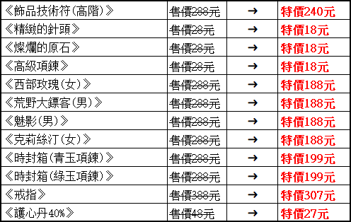 ※結束遊戲時,請於遊戲中按[結束遊戲],並依系統等待時間自動關閉遊戲, 以免造成遊戲資料遺失。 ※購買幸運盒道具後,請儘速使用完畢,避免因遊戲資料更新而造成資料異常。 ※幸運盒道具為機會中獎商品,消費者購買或參與活動不代表 即可獲得特定商品。 ►百寶閣特價即將結束商品: