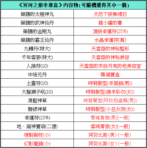 ►百寶閣限時上架: (販售時間2022/8/25 維護後 ~2022/9/7 維護前) 冥河之狼幸運盒 售價48元