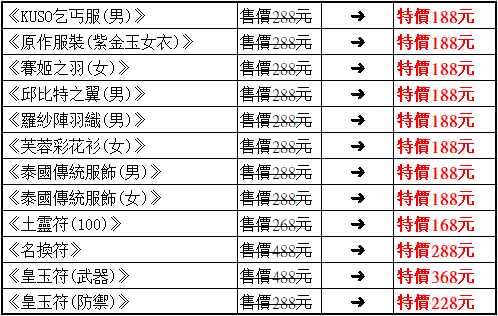 ►百寶閣特價商品: (販售時間2019/12/26 維護後 ~2020/1/2 維護前)