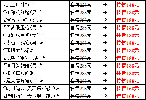 ►百寶閣特價商品: (販售時間2020/5/28 維護後 ~2020/6/4 維護前)