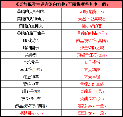(販售時間2020/8/6 維護後 ~2020/8/20 維護前) 炎龍風雲幸運盒 售價48元