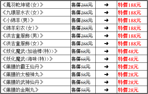 ►百寶閣特價商品: (販售時間2020/8/6 維護後 ~2020/8/13 維護前)