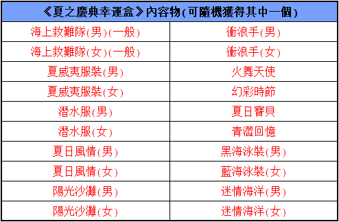 (販售時間2020/9/24 維護後 ~2020/9/29 維護前) 夏之慶典幸運盒 售價166元