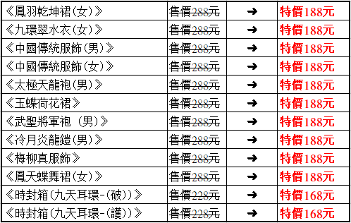 ►百寶閣特價商品: (販售時間2020/9/24 維護後 ~2020/9/29 維護前)
