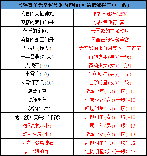 ►百寶閣限時上架: (販售時間2021/6/24 維護後 ~2021/7/8 維護前) 熱舞星光幸運盒 售價48元