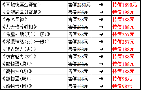 ►百寶閣特價商品: (販售時間2021/6/24 維護後 ~2021/7/1 維護前)