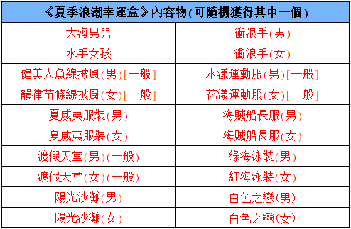 ►百寶閣限時上架: (販售時間2021/7/29 維護後 ~2021/8/5 維護前) 夏季浪潮幸運盒 售價166元