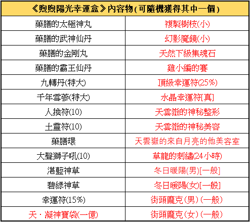 ►百寶閣限時上架: (販售時間2022/1/6 維護後 ~2022/1/20 維護前) 煦煦陽光幸運盒 售價48元