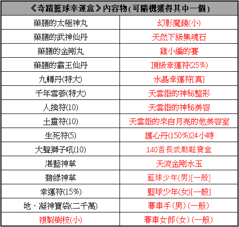 (販售時間2022/3/10 維護後 ~2022/3/24 維護前) 奇蹟籃球幸運盒 售價48元