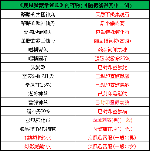►百寶閣限時上架: (販售時間2022/5/19 維護後 ~2022/6/2 維護前) 疾風猛獸幸運盒 售價48元