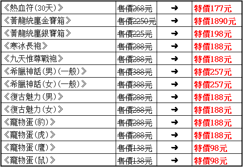 ►百寶閣特價商品: (販售時間2022/5/19 維護後 ~2022/5/26 維護前)