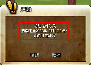 『粉紅花珠』 效果:具有所有氣功+3、獲得經驗值+100%、^武器攻擊力+7%、武功威力+12%、防具防禦度總和+12%、^體力+600、內功+400、對怪物攻擊力+200、對怪物防禦力+200效果的花珠。