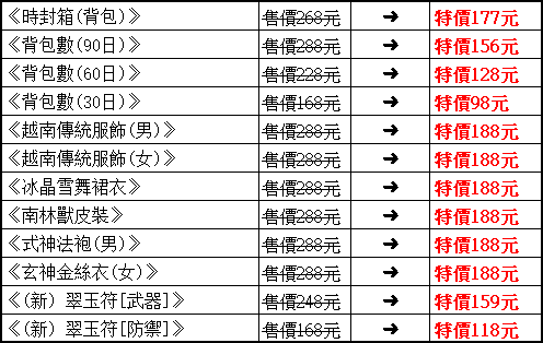 ►百寶閣特價商品: (販售時間2023/9/7 維護後 ~2023/9/14 維護前)