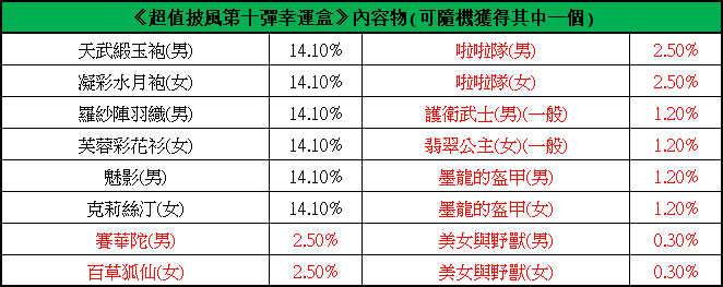 ►百寶閣限時上架: (販售時間2026/3/12 維護後 ~2026/3/19 維護前) 超值披風第十彈幸運盒 售價99元